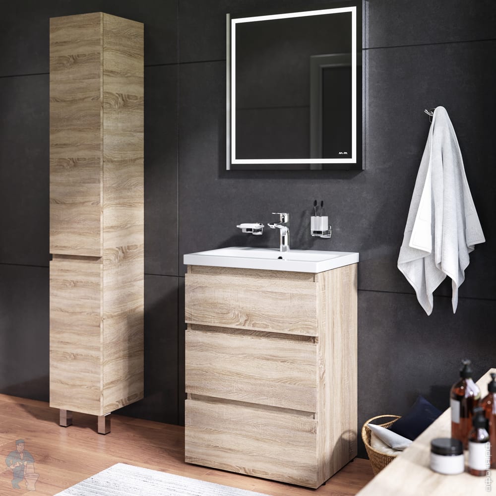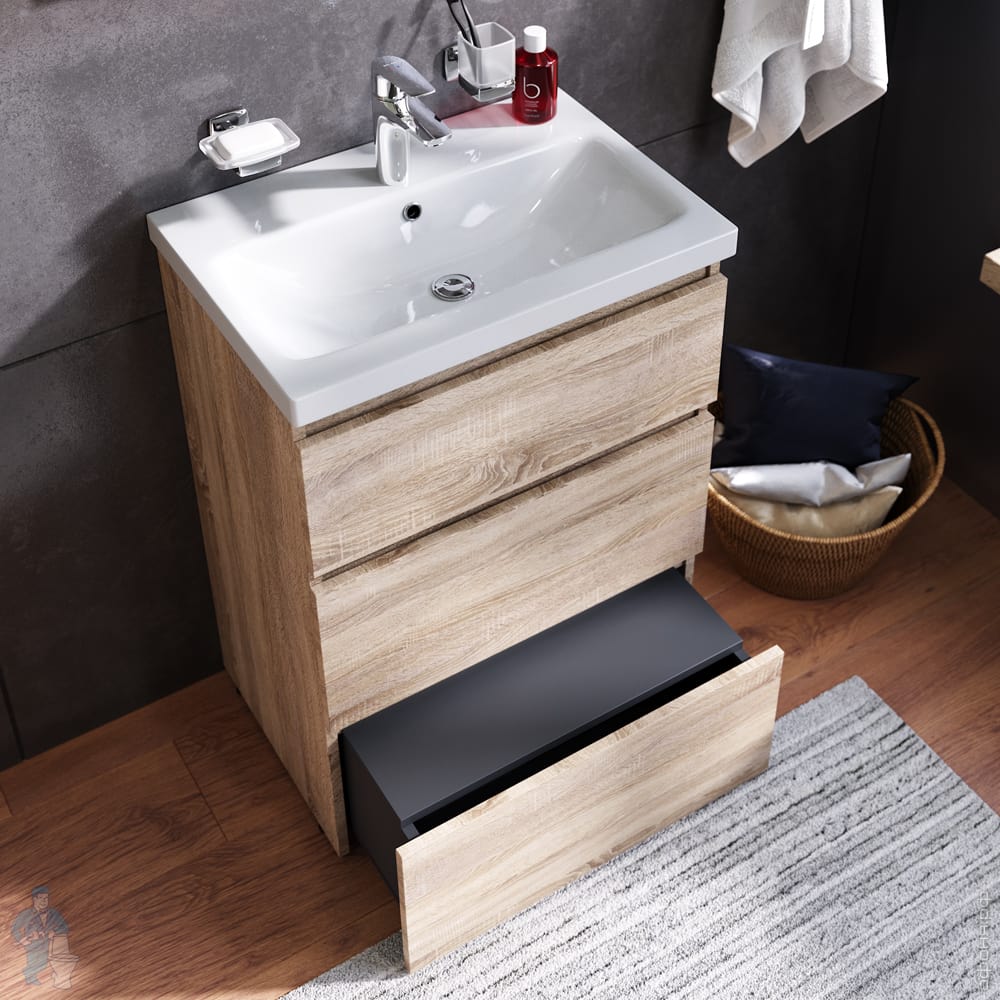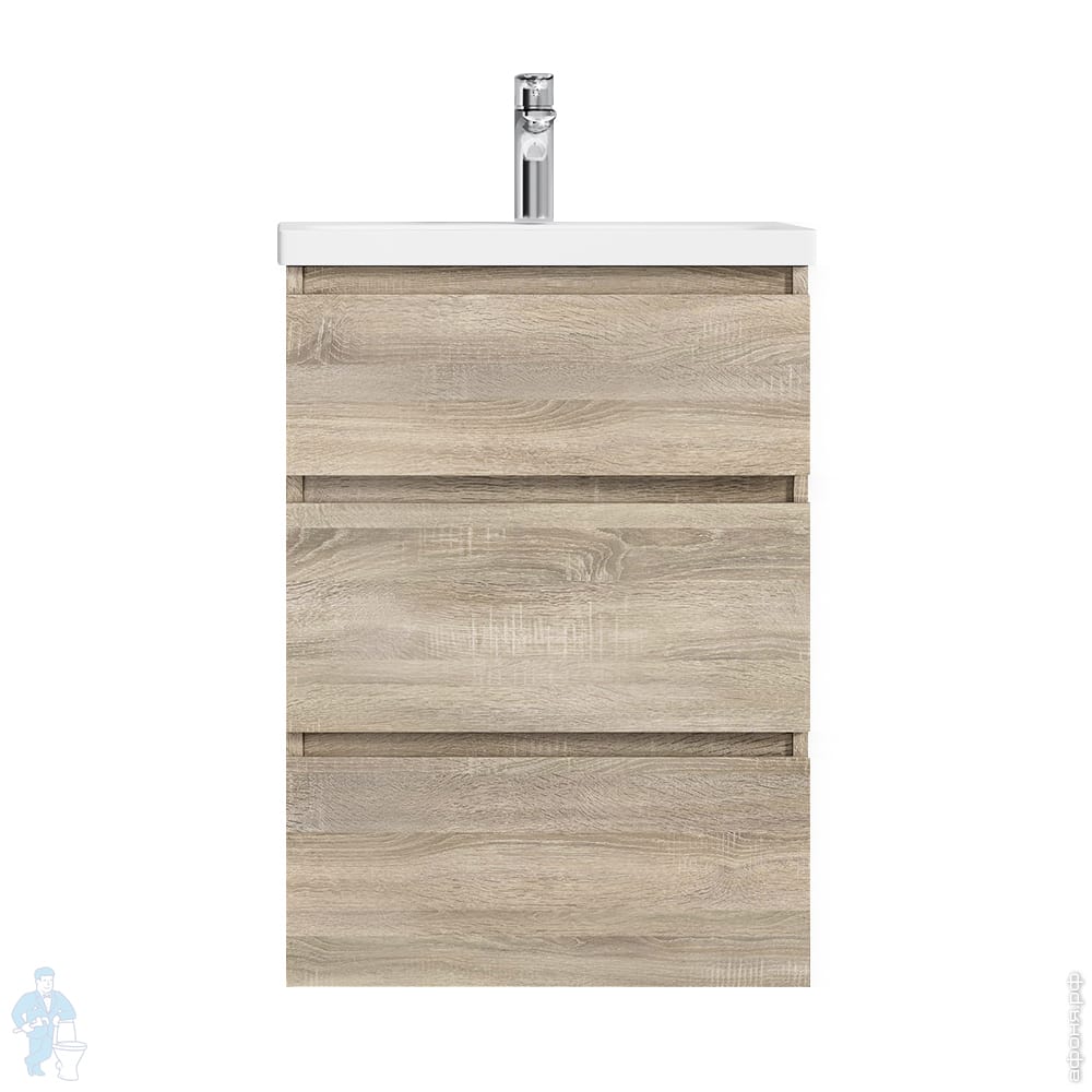 1) M91FSX0602OF GEM S, База под раковину, напольная, 60 см, 3 ящика, светлый дуб 610х430х850