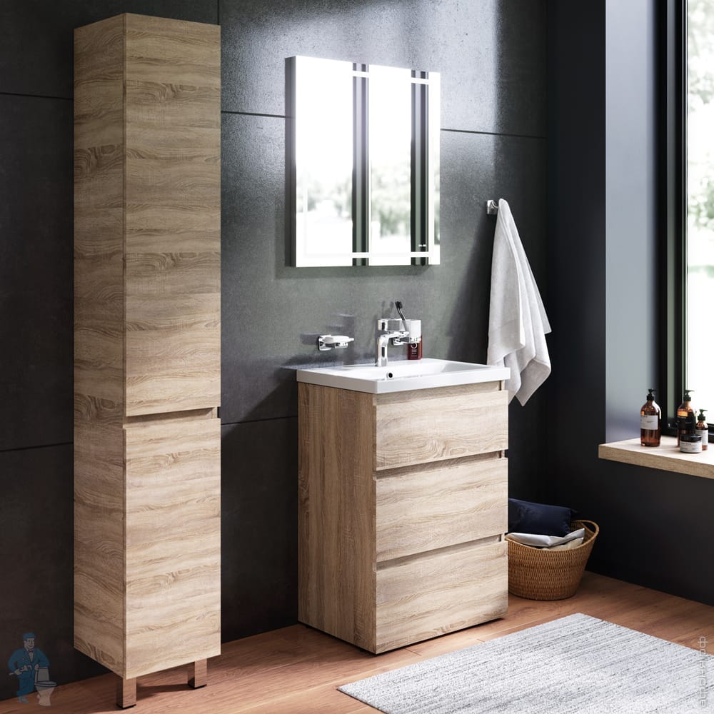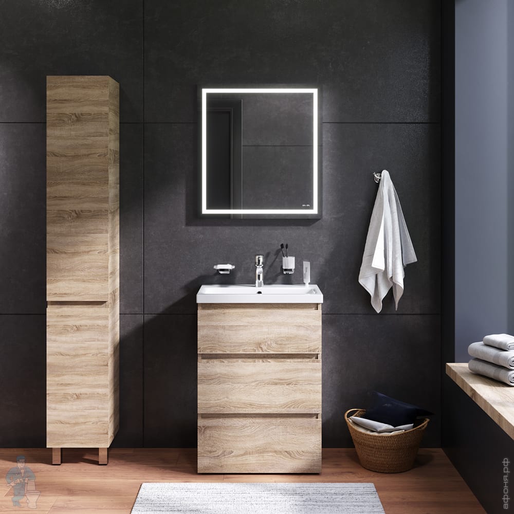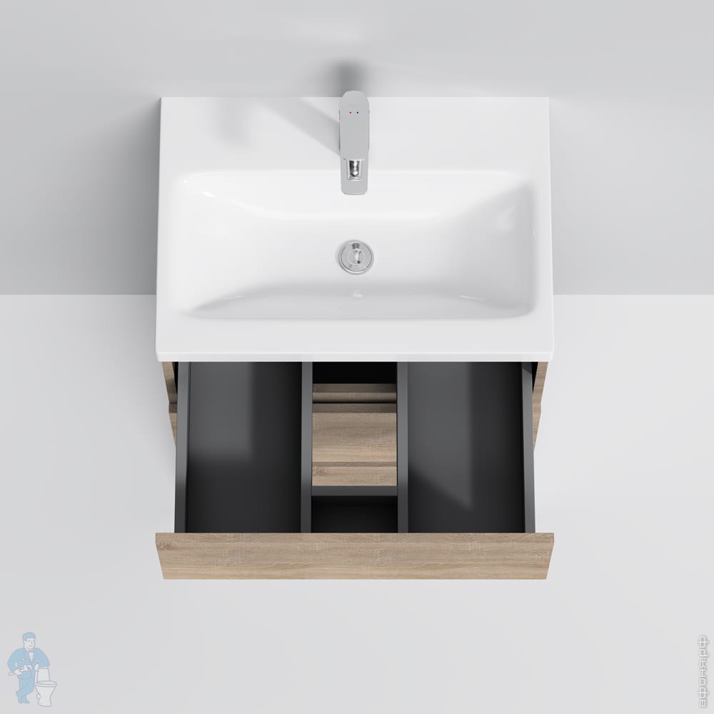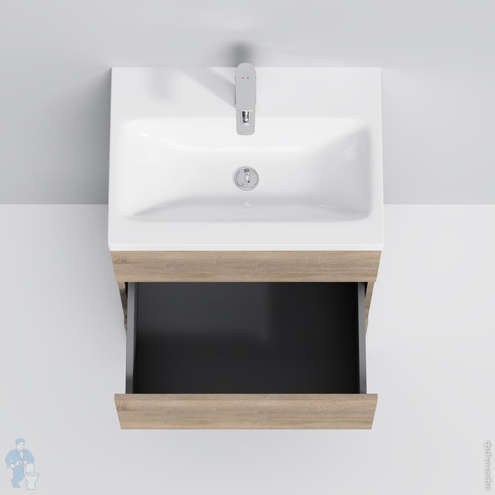 1) M91FSX0602OF GEM S, База под раковину, напольная, 60 см, 3 ящика, светлый дуб 610х430х850