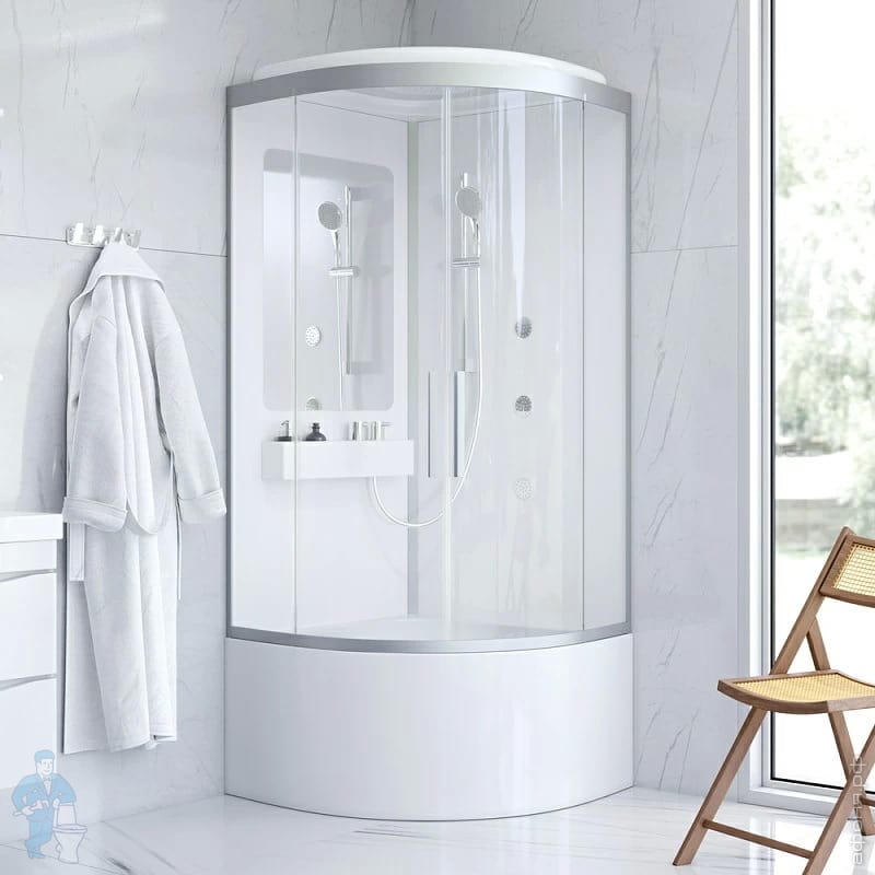 Увеличенная внутренняя площадь: при компактном размере 900х900 мм полезная площадь аналогична кабинам 1000х1000 мм, что позволит без помех разместить кабину даже в небольшой ванной и при этом не чувствовать себя стесненным.