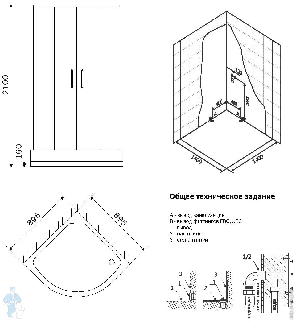 | Тип: | Полукруглая | Назначение: | Для душа |