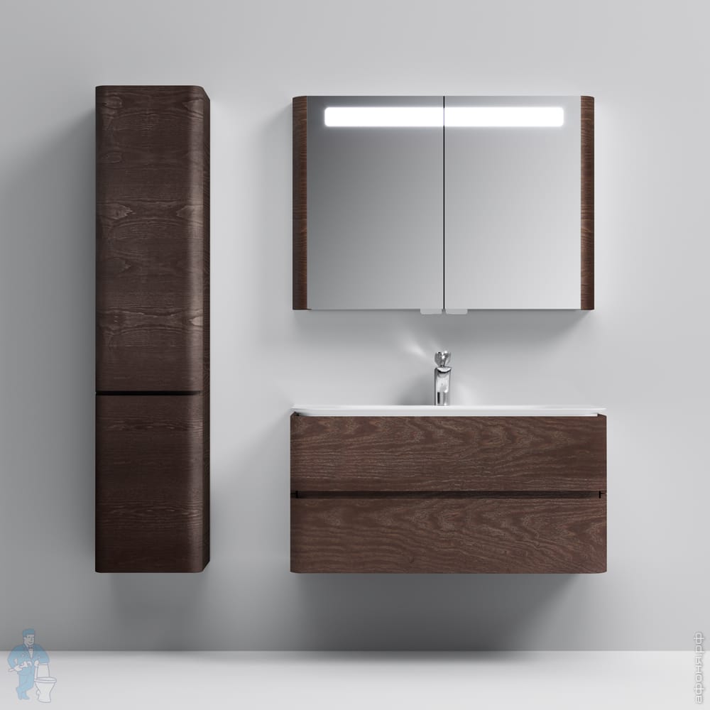 Зеркальный шкаф AM.PM Sensation 100см, с подсветкой, табачный дуб, текстурированный M30MCX1001TF