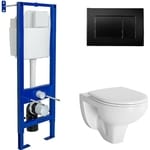 BERGES комплект инсталляция АТОМ410, клавиша смыва черная, унитаз GAMMA с сиденьем 042431