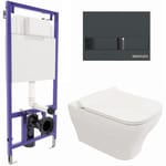 BERGES комплект инсталляция NOVUM, клавиша L6 черный глянец, унитаз Strati Rimless, сиденье 042454