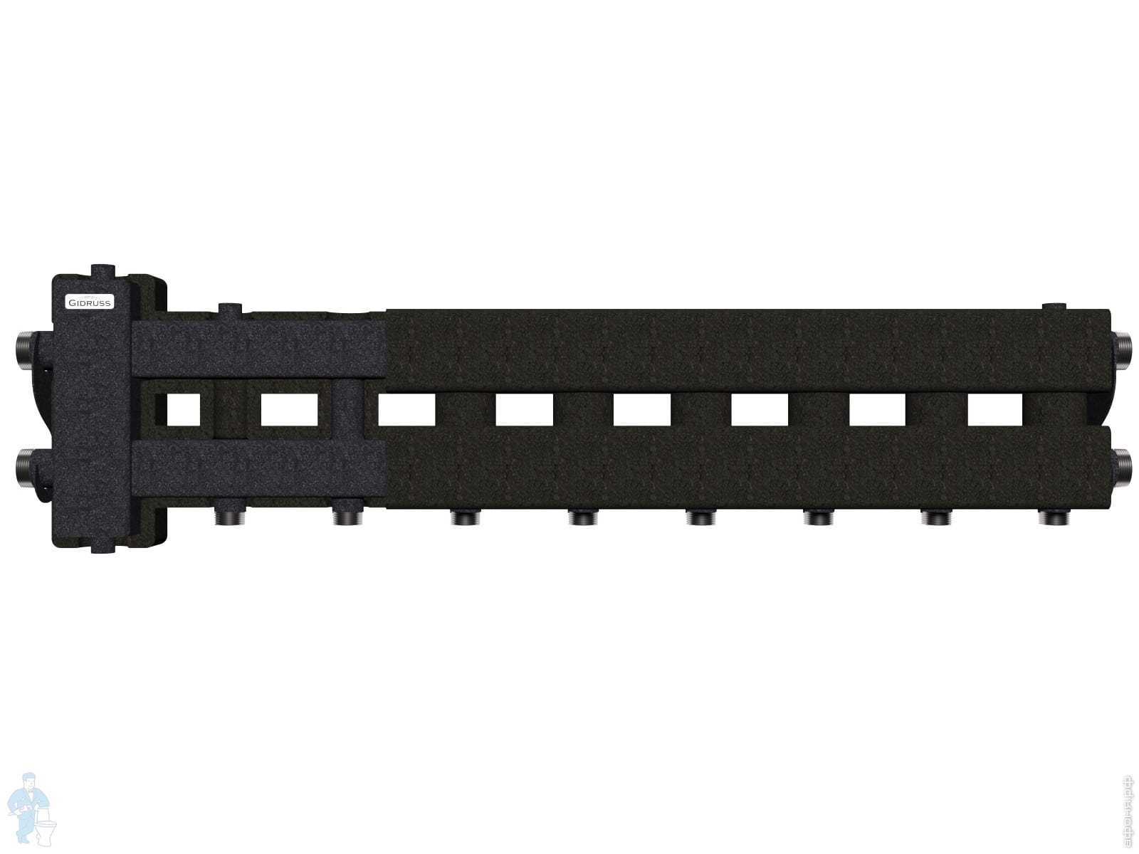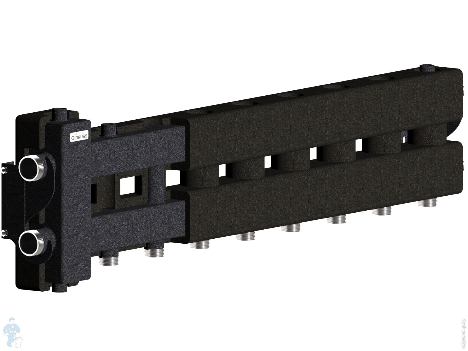 Балансировочный коллектор Gidruss BM-80-5D.EPP до 80 кВт, 1 1/4", 4 контура, 4D-кроншт, черн.муар