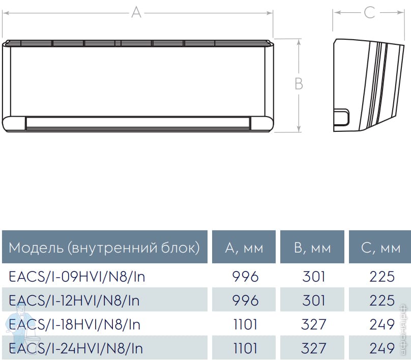 Блок внутренний ELECTROLUX EACS/I-09HAV/N8_22Y/in сплит-системы инвертор, до 25 м2,