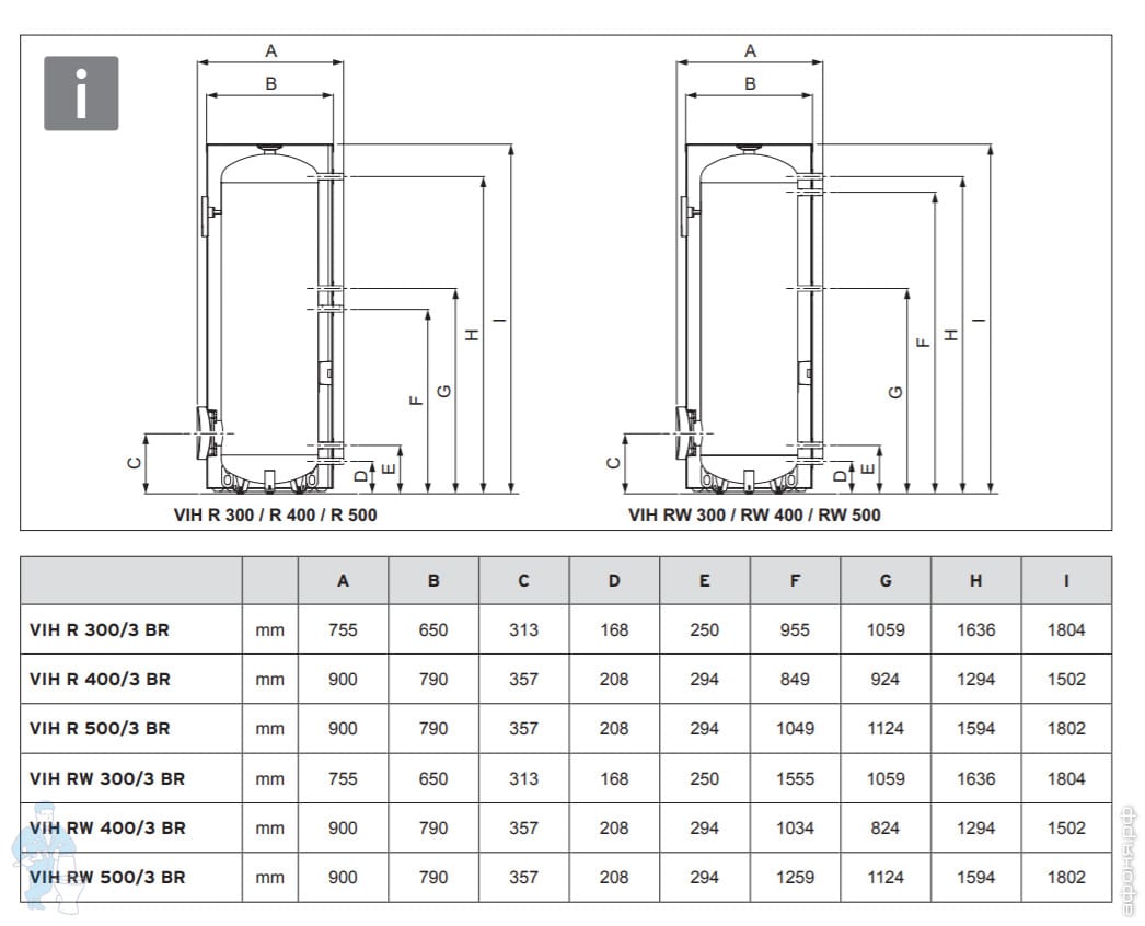 1) Температура подающей линии 80 °C, объёмный расход подающей линии змеевика 2,79 м3/ч (VIH R 500), расчётная температура горячей воды dT=35K.