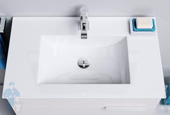 Тумбы комплектуются керамическими умывальниками серии Квадро (производитель Кировская керамика).