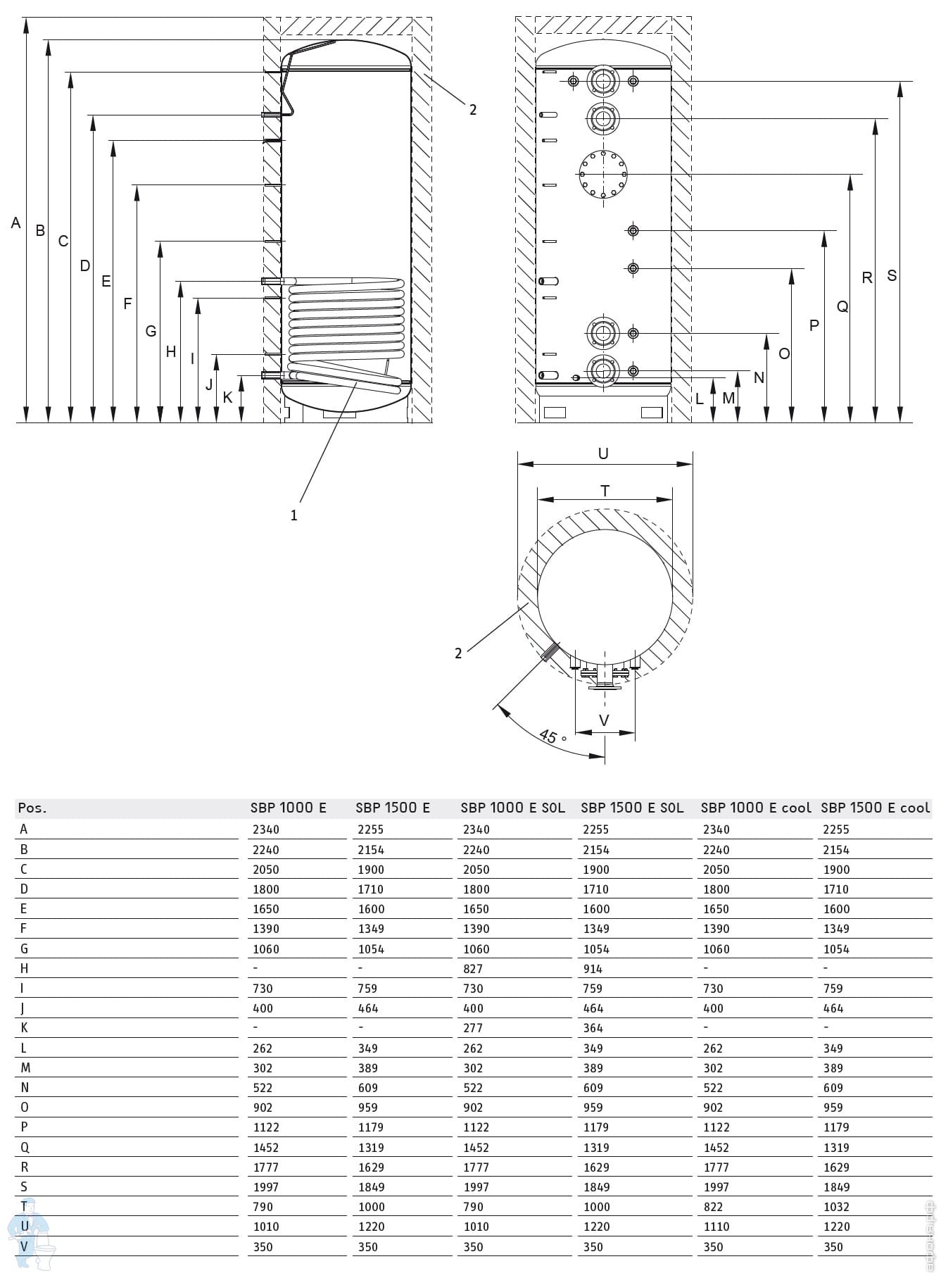 - Модели SBP 1000/1500 E SOL оснащены теплообменником для подключения солнечных коллекторов