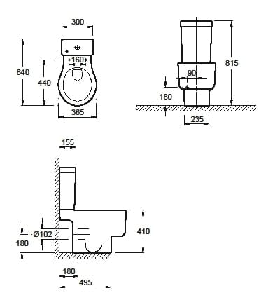 Унитаз (64 x 36,5 см) с горизонтальным выпуском. Высота
