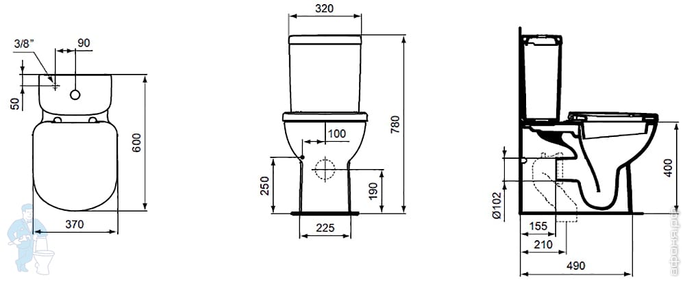 | Тип: | Горизонтальный выпуск | Назначение: | Для ванной комнаты |