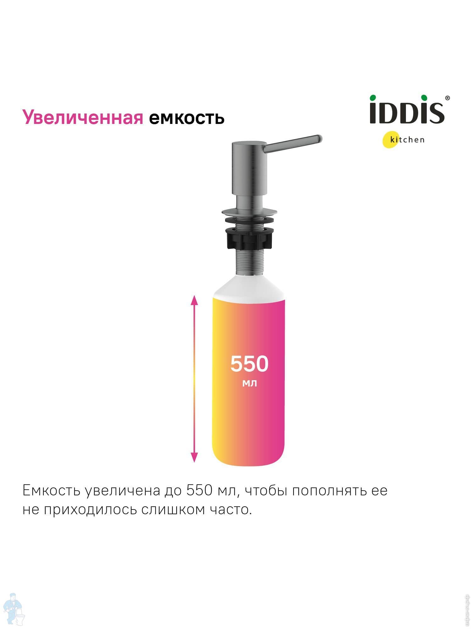 Дозатор Iddis Kitchen Line 550 мл, встраиваемый монтаж, латунь, светлый графит матовый SDIGM00i59