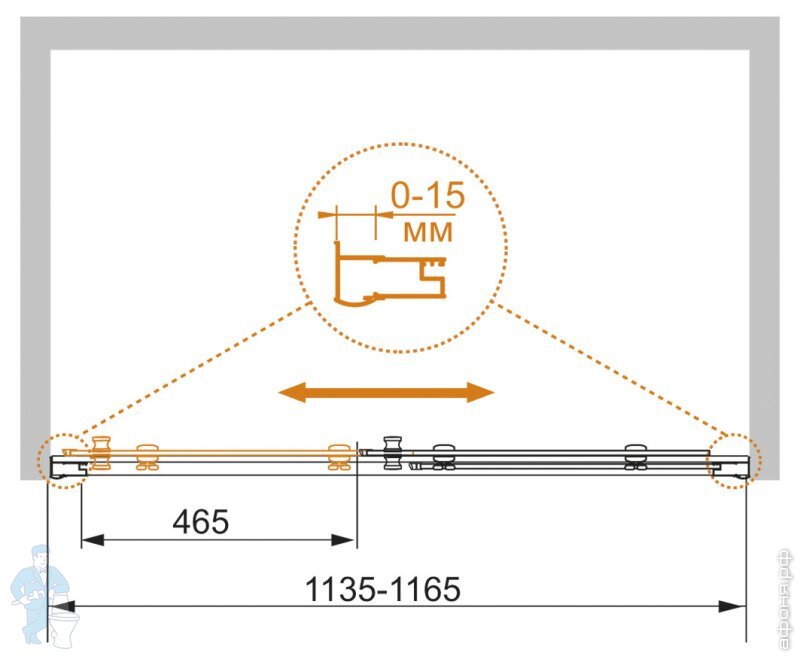| Тип: | Раздвижная душевая дверь | Назначение: | Для душа |