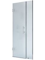 Душевое ограждение состоит из распашной двери на петлях и неподвижной части, располагаемой со стороны открытия двери. Петли и ручка изготовлены из нержавеющей стали.