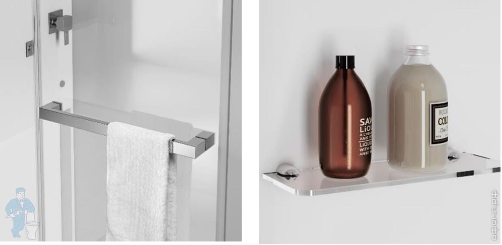 Закаленное стекло 6 мм, акриловый душевой поддон с трапом, металлическая рама с регулируемыми ножками.