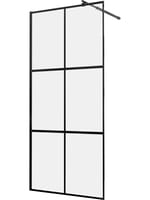 Фиксированная душевая перегородка из закаленного стекла в алюминиевой рамке по периметру, с кронштейном 1200 мм в комплекте. Прозрачное стекло имеет принт "решетка", нанесенный методом шелкографии.