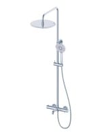 У модели есть излив, ручной душ и верхний душ, круглой формы