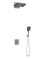 Идет в комплекте с: прямоугольным верхним душем, прямоугольным ручным душем, держателем для ручного душа и встраиваемым смесителем