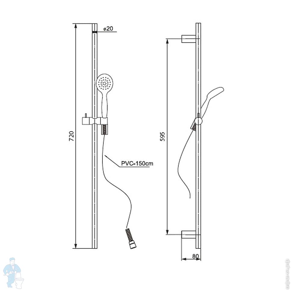 Модель идет в комплекте с: ручным душем, держателем для ручного душа, душевой штанги и шланга