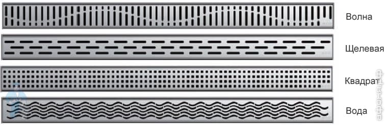 Подберите решетку по вашему вкусу Волна/Квадрат/Линия/Под плитку/Сталь, равную длине лотка.