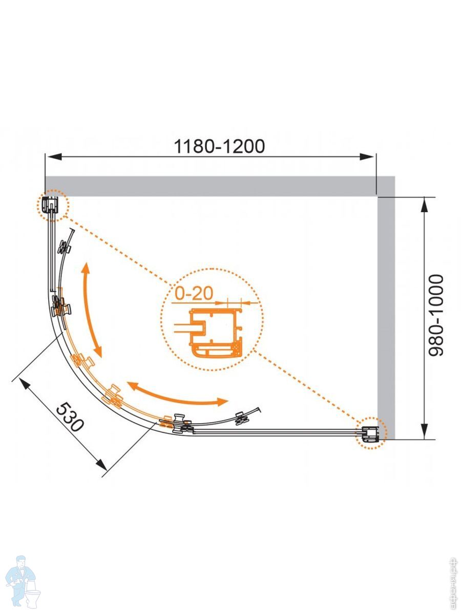 Душевой уголок CEZARES ANIMA прав.(1180-1200х980-1000х2000) RH-2-120/100-P-Cr-R стекло матовое/хром
