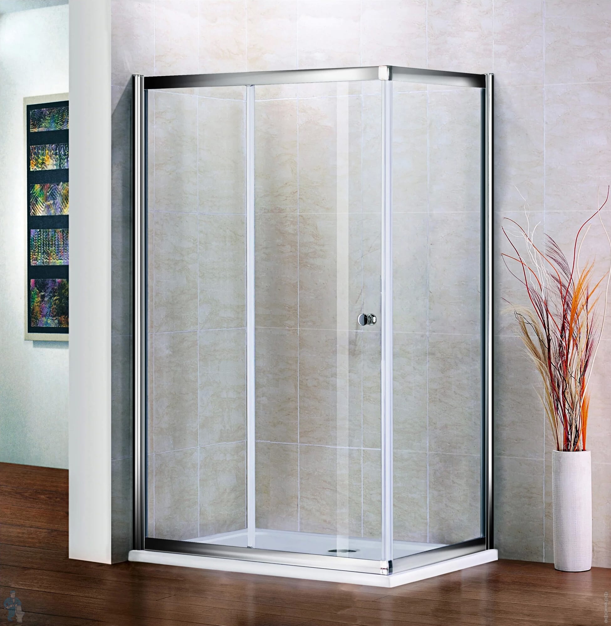 Cezares Pratico - это душевой уголок с двумя раздвижными дверями. Исполнение Cr (хром), тип стекла C (прозрачное) или P (Punto), толщина 5мм. Может комплектоваться поддонами типа AH. Поддон приобретается отдельно.