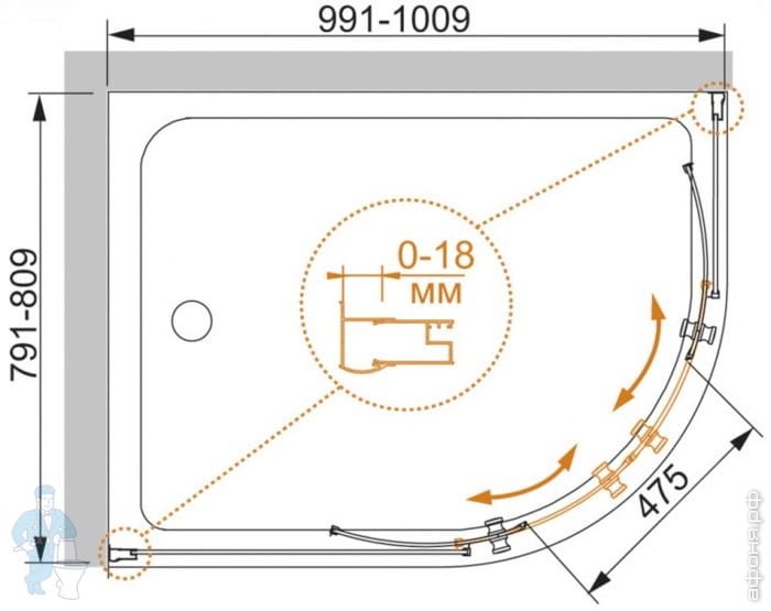 | Конструкция: | Раздвижная/откатная дверь(и) | Форма: | Угловая асимметричная |