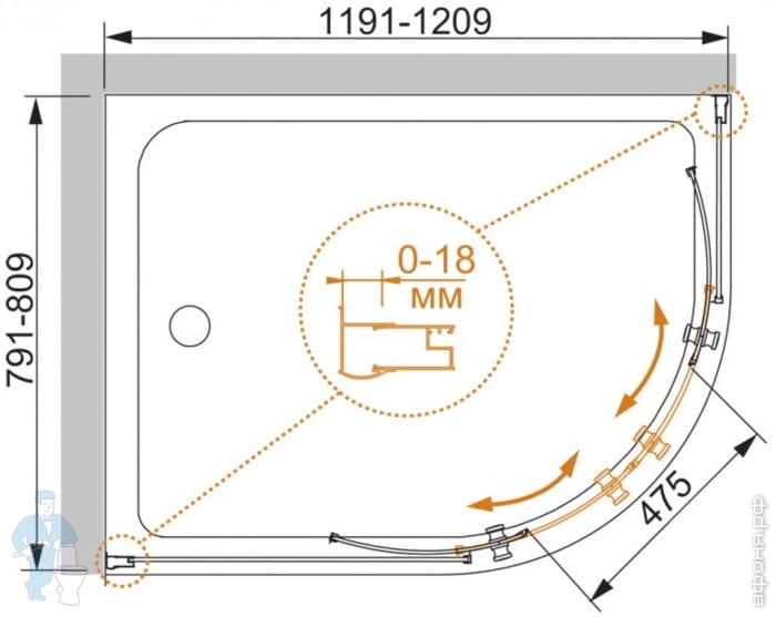 ПодВидДушевой уголок (без поддона)