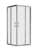 Квадратный душевой уголок с двумя раздвижными от центра дверями. Каждая дверь сдвигается вдоль внутренней стороны неподвижной части, что позволяет разместить рядом с ограждением полотенцесушитель, тумбу, вешалку или иной предмет интерьера ванной комнаты. Обе двери оснащены механизмом откидывания для удобства уборки.