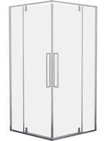 Квадратный душевой уголок с двумя распашными от угла маятниковыми дверями. Поворотные петли позволяют открывать обе двери как наружу, так и внутрь. Петли и ручки изготовлены из нержавеющей стали.