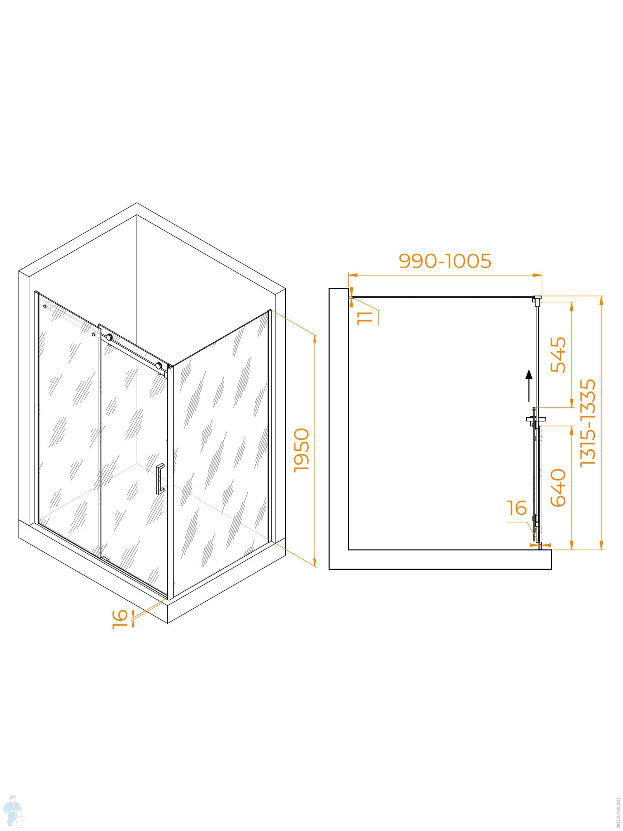Душевой уголок RGW Tornado TO-44 (1300х1000х1950) прямоуг., стекло 8мм прозрачное/хром 02074430-11