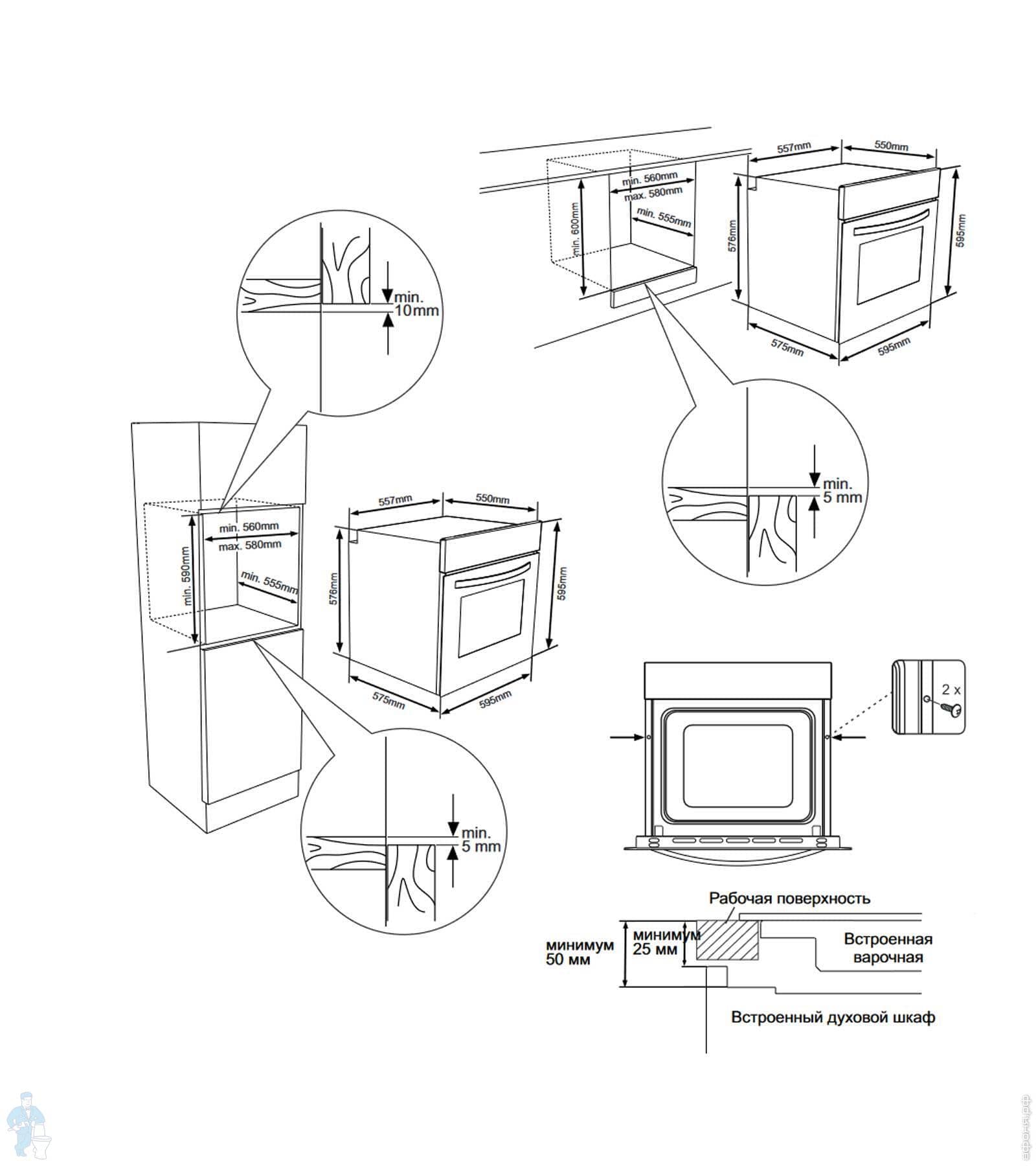 Размер ниши для встраивания в столешницу (ШхГхВ), мм: 560/580х555х600