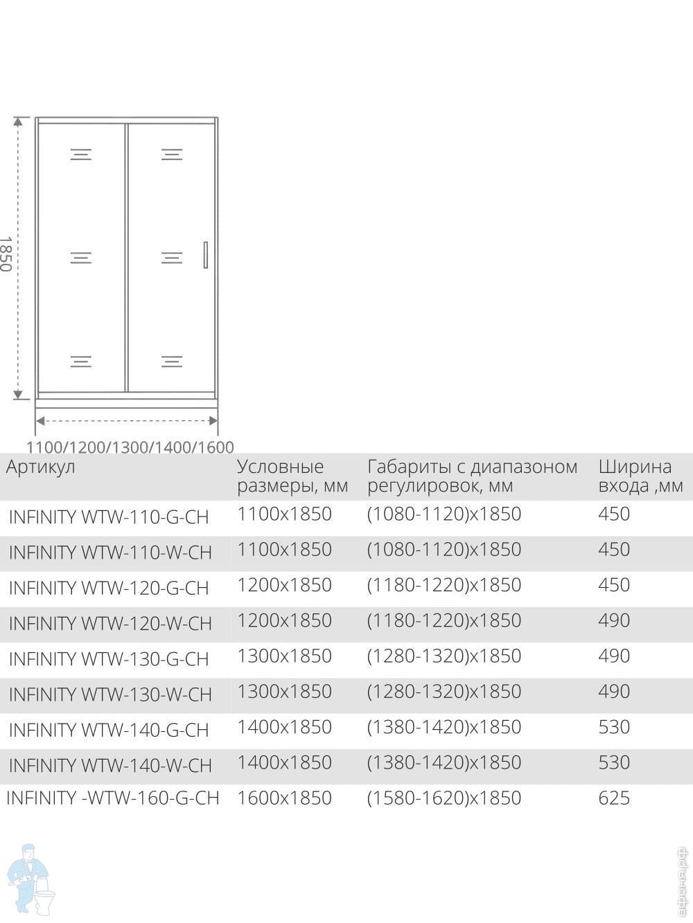 Дверь душевая GOOD DOOR BAS INFINITY WTW-140-C-CH (140х185) двери раздвижные, стекло прозрачное 6мм