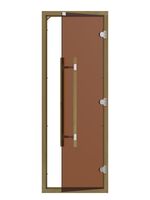 Дверь стеклянная SAWO для сауны (690х1890) 7/19 коробка кедр,бронза, левая/правая, с порогом, прямая ручка с металлической вставкой, 741-4SGD-3