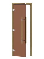 Дверь стеклянная SAWO для сауны (690х1890) 7/19 коробка кедр,бронза, левая, без порога, изогнутя ручка, 741-3SGD-L-1