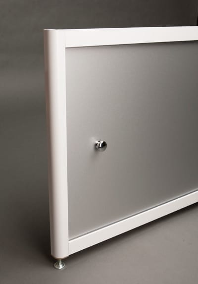Экран для ванны из алюминиевого профиля с наполнением из композитного материала цвета алюминий.