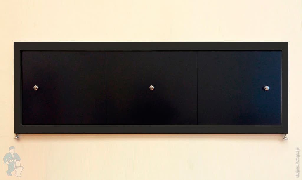 Экран под ванну A-SCREEN черный матовый 1500х500-650 черный профиль, 3 дверцы