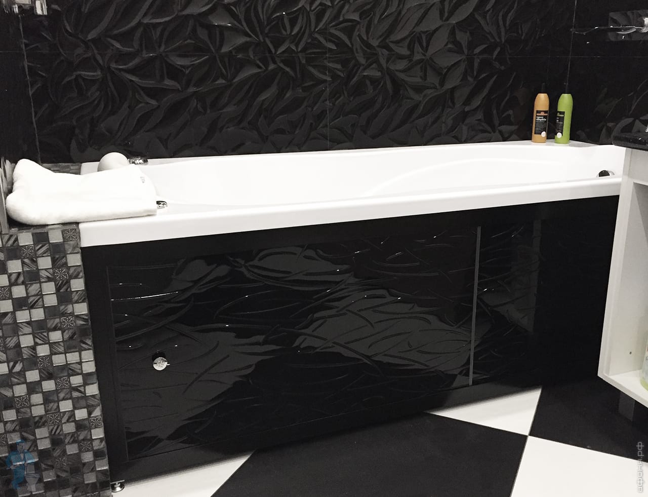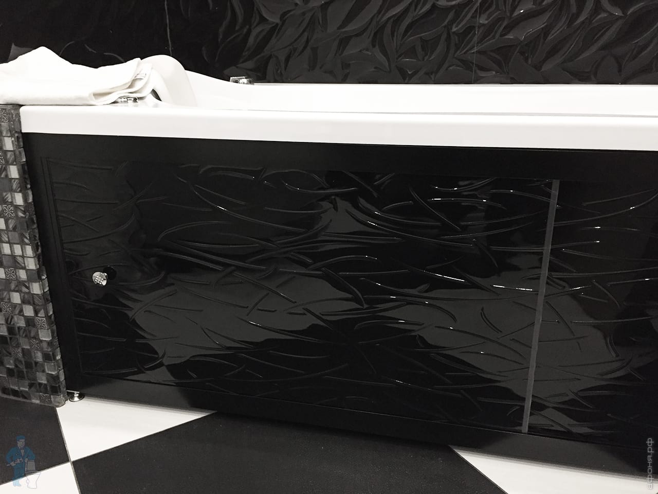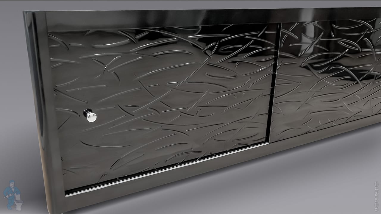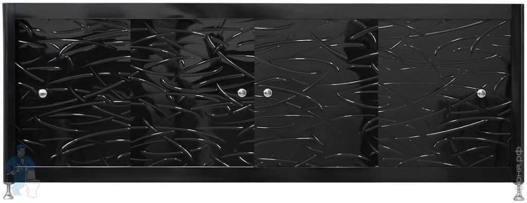 Экран под ванну A-SCREEN Grass Black 1500х500-650 черный профиль, 4 дверцы