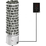 Управление электрокаменкой производится при помощи удобного выносного пульта с сенсорными кнопками, который покупается дополнительно.