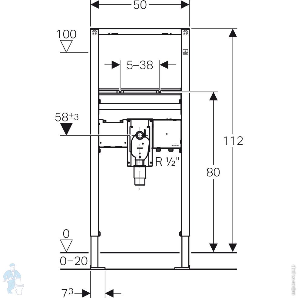 * При завершающем монтаже внутристенный сифон регулируется по высоте 3 см