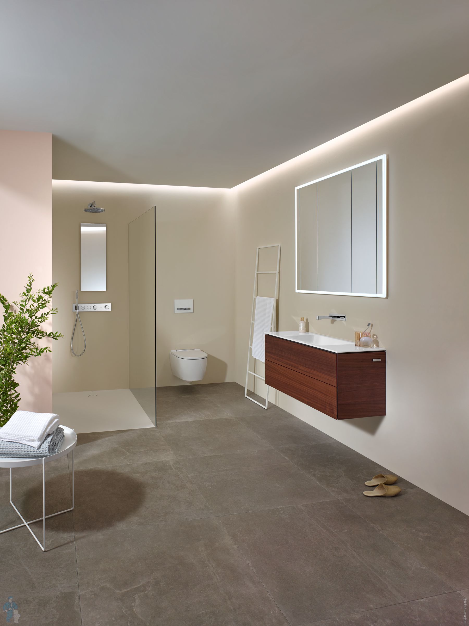 - Нескользящее покрытие для влажных поверхностей душевой зоны, класс B (стандарт DIN 51097)