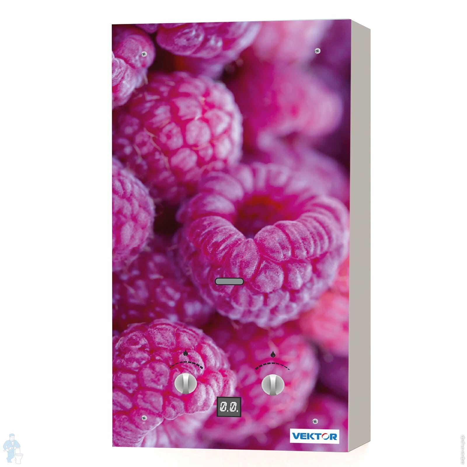 Газовая колонка VEKTOR 10 G (стекло) картинка Малина 18кВт 10л/мин 550х340х150 9кг