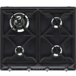 Газовая варочная панель SMEG SR964NGH 60см, 4 горелки, цвет черный, чугунные решетки
