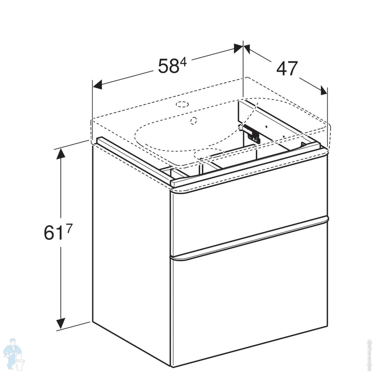 - Глубокая фарфоровая раковина Geberit Smyle Square, 60 см;