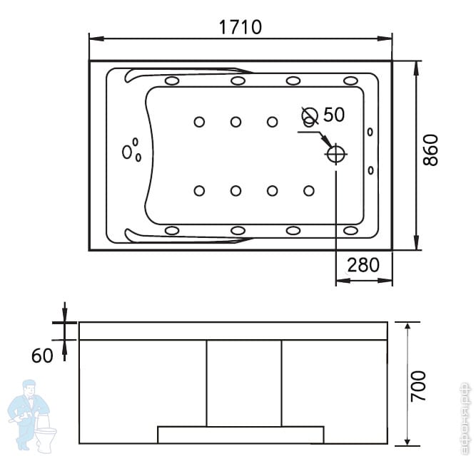 | Длина, мм: | 1710 | Ширина, мм: | 860 |