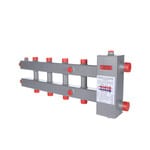 Гидроразделитель с коллектором горизонтальный рассчитан на применение в системах с максимальной подключаемой тепловой мощностью 70 кВт, максимальной температурой теплоносителя 110 °C, рабочим давлением до 6 бар.