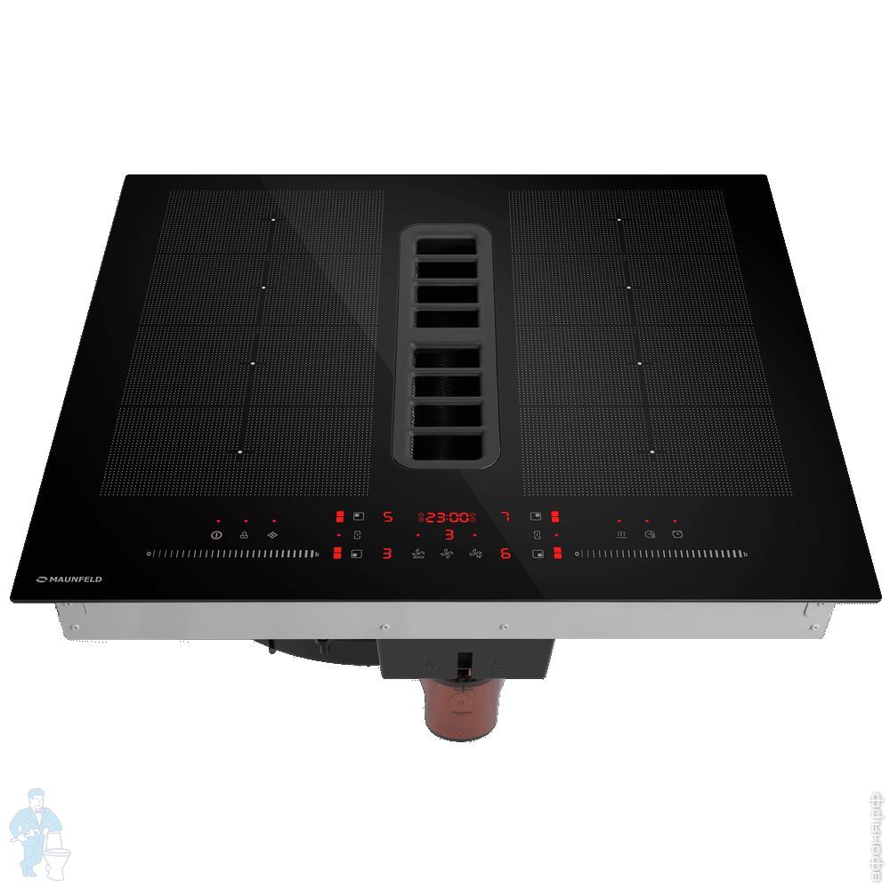 -Максимальная скорость подъема пара равна одному метру в секунду. Варочная панель MAUNFELD MIHC604SF2BK со встроенным вентиляционным модулем создает мощный поперечный поток воздуха, в результате чего пар отводится непосредственно с поверхностей кастрюль, сковородок или жаровен и никогда не поднимается вверх. Благодаря этому встроенный вентиляционный модуль крайне эффективно защищает вашу мебель и одежду от частиц жира и въедливого запаха.