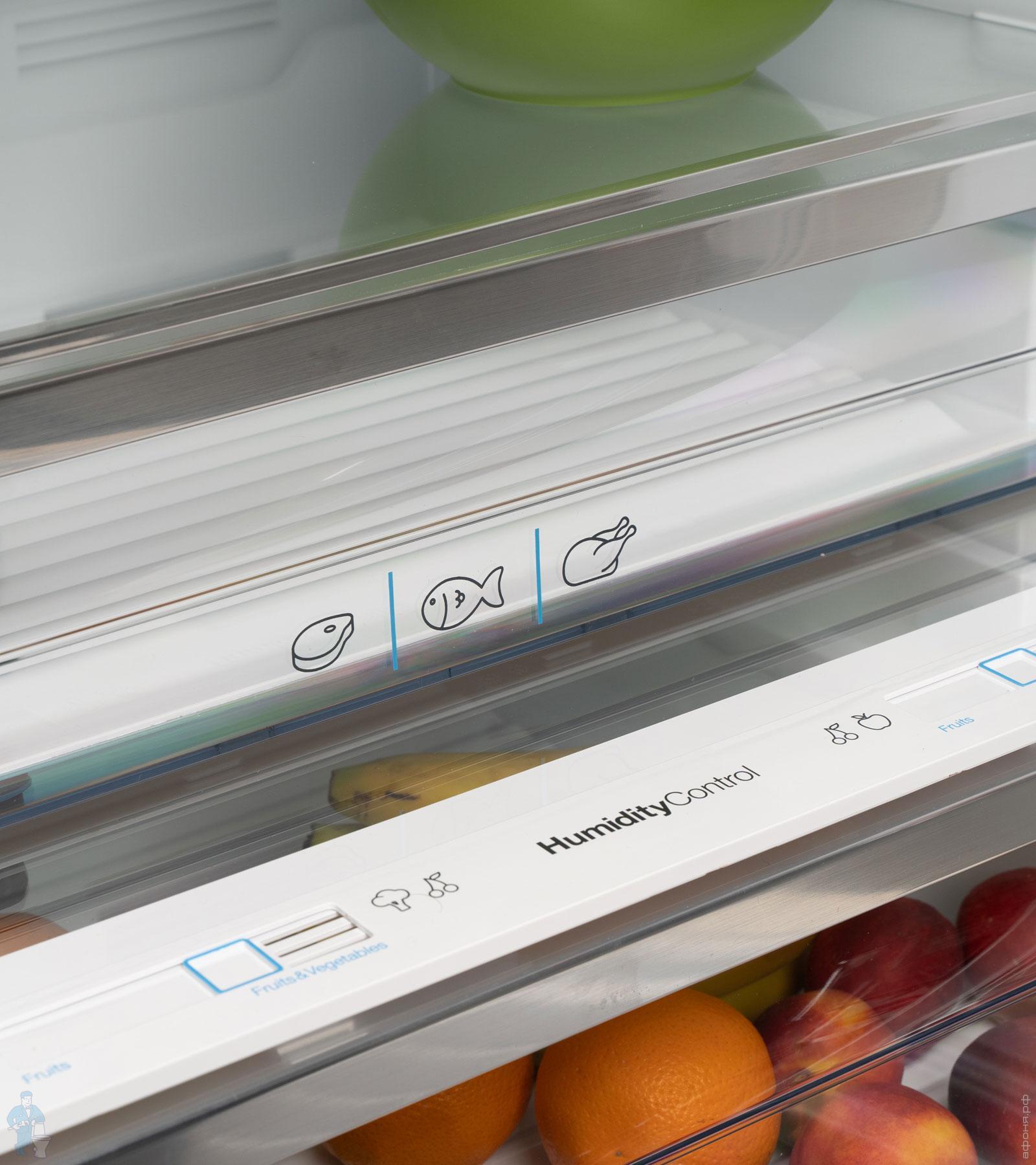 * Благодаря контролю влажности Humidity control и зоне свежести овощи и фрукты дольше остаются свежими