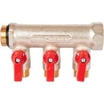 Коллектор STOUT с шаровыми кранами 3/4", 3 отвода 1/2" (красные ручки) кольцо EPDM, SMB 6210 341203