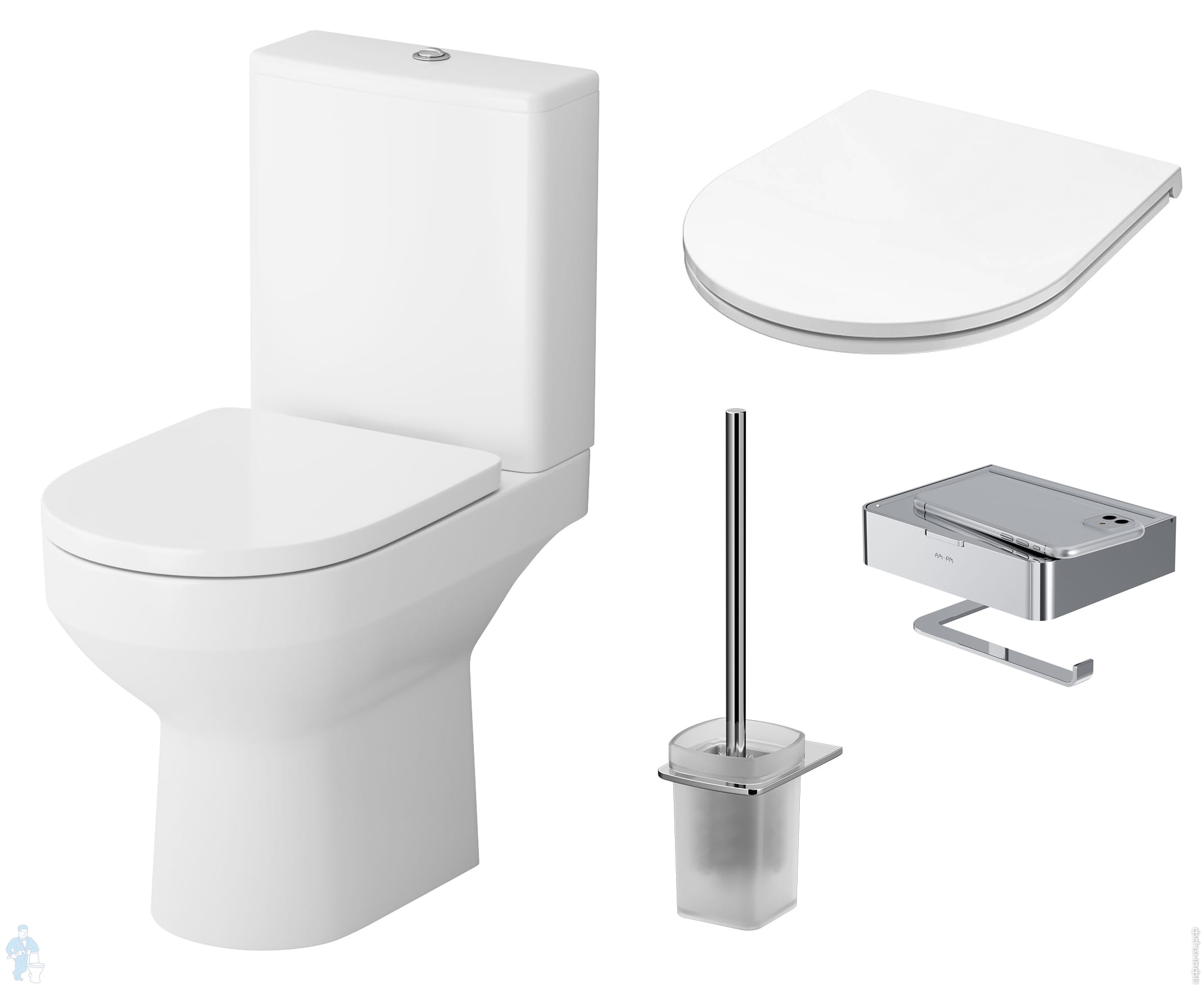 Комплект компакт AM.PM Spirit CK70DC Унитаз-компакт с сиденьем, стойка с щеткой и держатель бумаги