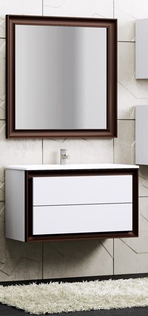 Комплект мебели Opadiris Капри 90 белый гл/орех, раковина Болеро 900 с тумбой (900х585х450), зеркало